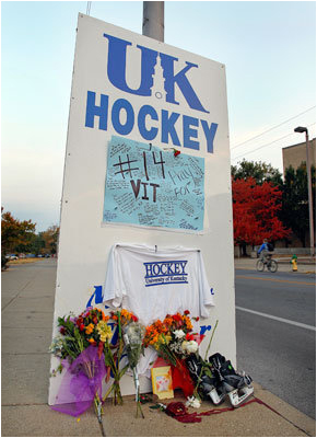 On Sunday October 10th, 2010 UK Hockey player Taylor Vit was involved in a tragic car accident and passed away from his injuries the next day. The Villanova, PA native was a Senior and in his third season playing hockey for Kentucky. Taylor made an immediate impact both on and off the ice after transferring to UK. He lead the team in scoring for the majority of his time with the Cats and was one of the Top Ten ranked scorers in all of ACHA Division 2 hockey. Taylor was also a leader in the lockeroom and on the bench, serving as an Assistant Captain. This page is a way for the University of Kentucky Hockey family to continue to honor Taylor Vit.